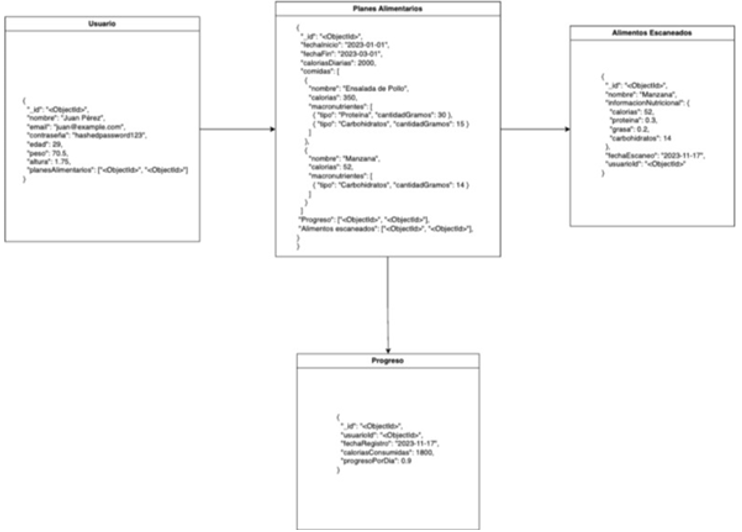 On the backend, Node.js, a JavaScript platform that provides an efficient environment for building servers, was used. Thanks to its ability to handle multiple requests simultaneously, a seamless integration with artificial intelligence and augmented reality services, essential aspects of the project, was achieved.(6) In addition, the MongoDB database was chosen for its NoSQL nature, allowing large volumes of data to be stored in a JSON-like document format. This facilitates the management of user data, food plans and consumption records, offering a flexible and scalable structure.(7)