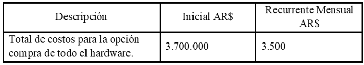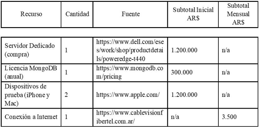 To represent the costs of the project, the effort required for its execution (human resources), licensing costs and necessary equipment were considered. The values shown are expressed in Argentine pesos as of the year 2024.