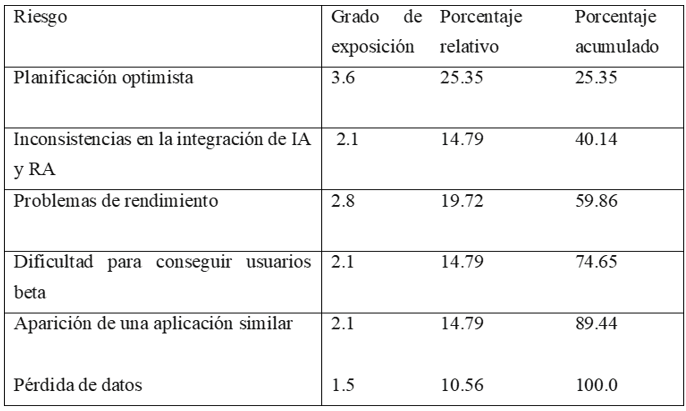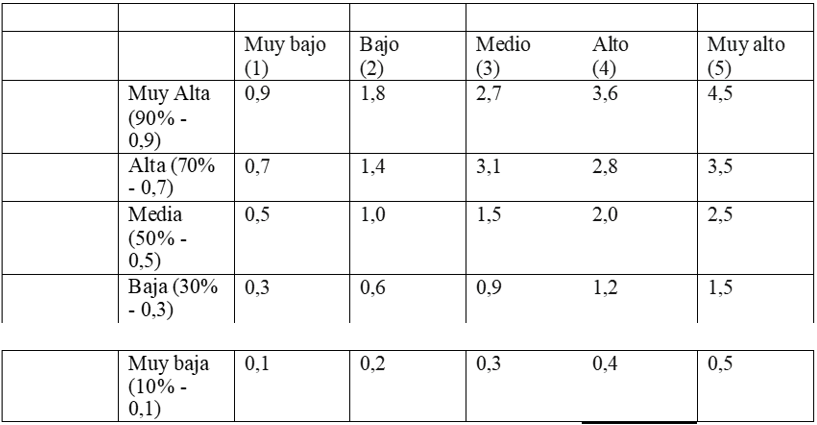 By applying the risk matrix to the identified risks, the risk exposure is obtained exposure to risk.