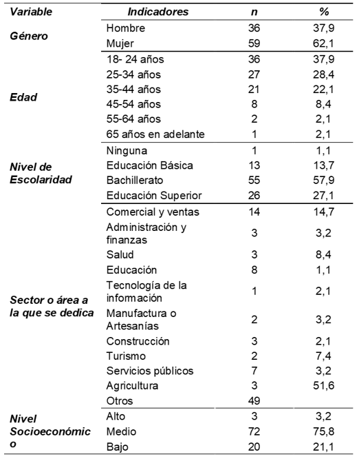 En la figura 1 se puede visualizar los datos sociodemográficos de la población estudiada en el recinto Libertad del Toachi, el 62,1 % de los participantes fueron mujeres, mientras que el 37,9 % fueron hombres. En cuanto a la distribución por edad, el grupo más representado fue el de 18 a 24 años con un 37,9 %, seguido del grupo de 25 a 34 años con un 28,4 %. En términos de nivel de escolaridad, el 57,9 % de los encuestados tenía educación de Bachillerato, mientras que el 27,1 % había alcanzado educación superior. En relación al sector laboral, la mayoría de los participantes, 51,6 %, se dedicaba a otras áreas no especificadas en los principales sectores laborales. Finalmente, la gran mayoría de los encuestados se clasificó dentro del nivel socioeconómico medio (75,8 %), seguido por un 21,1 % que se encontraba en el nivel socioeconómico bajo. Estos datos proporcionan una visión clara de las características demográficas y socioeconómicas predominantes en la comunidad estudiada.(17)