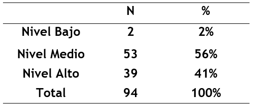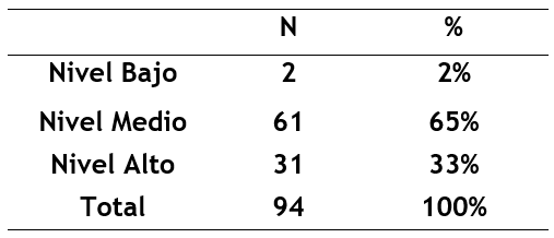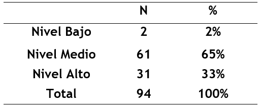 En la figura 3 representa los niveles de estrés laboral en el personal de enfermería del Hospital General IESS en Santo Domingo, Ecuador durante el año 2024. De acuerdo con la investigación, se demostró que el 65 % de los encuestados tienen un nivel medio de estrés laboral. Sin embargo, el 33 % presentó un nivel de estrés alto, lo que implica de forma negativa en el bienestar y el desempeño del personal.