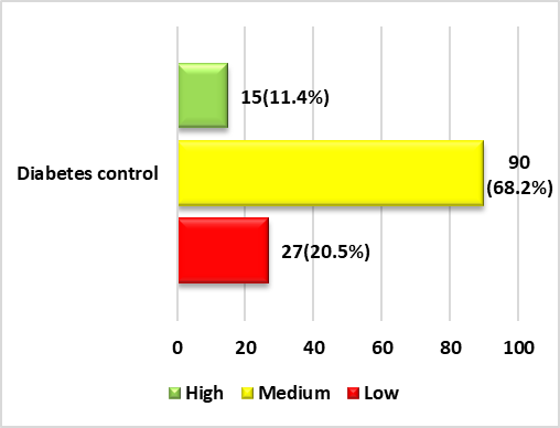 In figure 4, we can see that 11,4 % (n=159) of participants have a high quality of life in terms of diabetes control, 68,2 % (n=90) h ve an average quality of life, and 20,5 % (n=27) have a low quality of life.