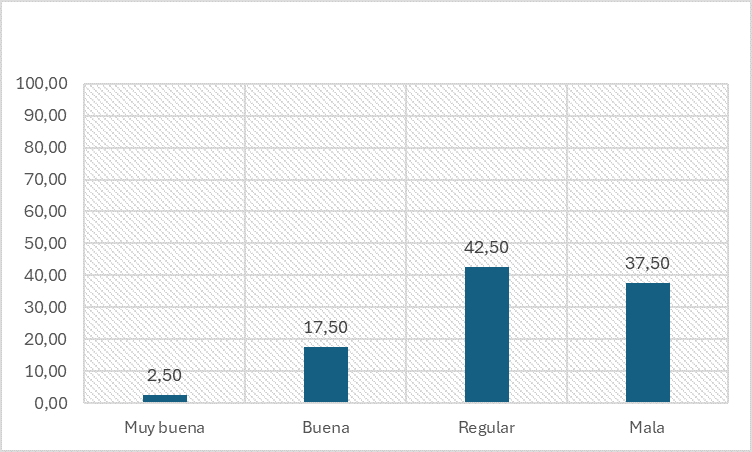 When asked about their experience with health services, most respondents rated it as fair (42,50 %), followed by poor (37,50 %) (figure 1). Negative experiences were mainly associated with ignorance and lack of understanding of the specific health needs of TTT and NB people (57,50 %), while others reported dehumanizing treatment (42,50 %). These data are reflected in the report that 75,00 % mentioned that their gender identity was not respected during health care.